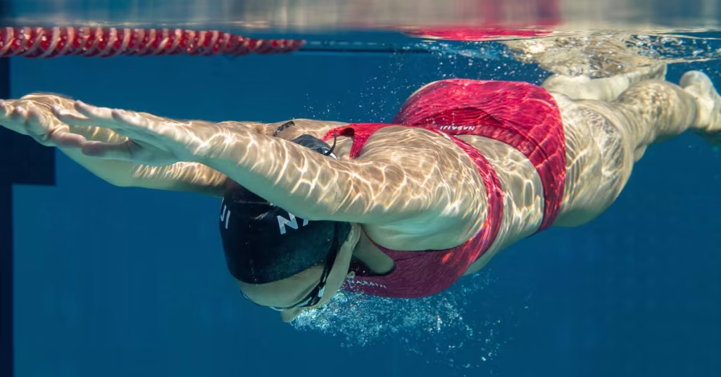 Une erreur commune est de ramener les bras trop loin derrière soi, jusqu’aux hanches. En brasse, les mains ne doivent jamais dépasser la ligne des épaules.
